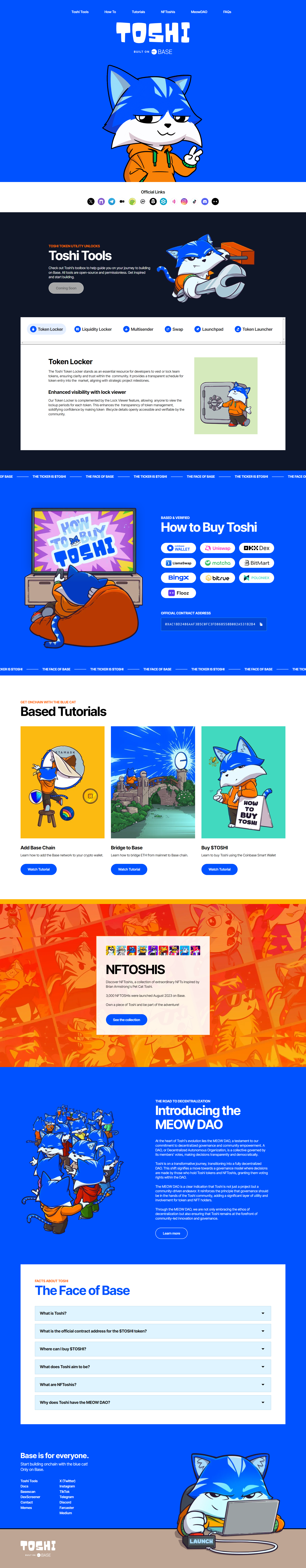 Toshi (TOSHI) is a memecoin on the Base blockchain, inspired by Satoshi Nakamoto and named after Coinbase co-founder Brian Armstrong’s cat. As a pet-themed memecoin, it has garnered significant attention on social media and among investors due to its high volatility and trading volume. Toshi aims to evolve beyond its memecoin origins by providing essential utilities for the Base ecosystem, positioning itself as a DeFi protocol symbiotic with Coinbase.